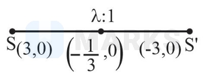 Let be the point of intersection of the common tangents to the parabola and the hyperbola . If and denote the foci of the hyperbola where lies on the positive -axis then divides in a ratio: