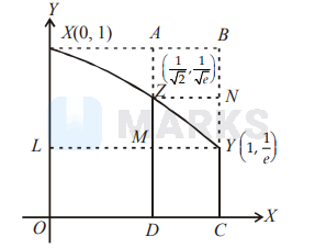 and area of rectangle $\mathrm{OCYL}=\frac{1}{e}$