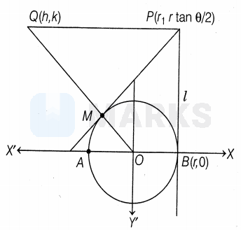 Let be a circle with diameter and centre . Let be the tangent to at . For each point on different from , consider the tangent at and let interest at Draw a line parallel to through intersecting at The locus of as varies over is