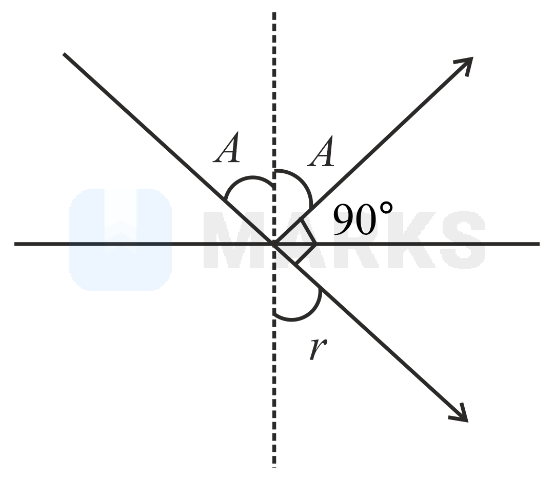 Let the refractive index of a denser medium with respect to rarer medium be and its critical angle be . At an angle of incidence when light is travelling from denser medium to rarer medium, a part of the light is reflected and the rest is refracted and the angle between reflected and refracted rays is . Angle is given by