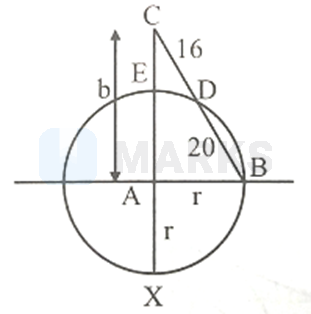 Let triangle is right-angled at . The circle with centre and radius cuts and internally at and respectively. If units and units, then the length is equal to
