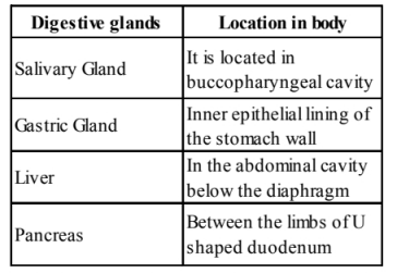 Human digestive system consists of two main parts: alimentary canal and digestive glands. The organ of human alimentary canal are mouth, pharynx oesophagus, stomach, small intestine, large intestine, rectum and anus. Major digestive glands with their locations are as follows :