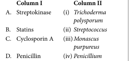 A-(ii), B-(iii), C-(i), D-(iv)