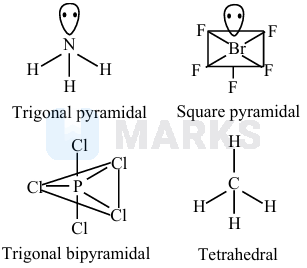 \hline \text { D. } & \mathrm{CH}_4 & \text { IV. } & \text { Trigonal bipyramidal } \\
