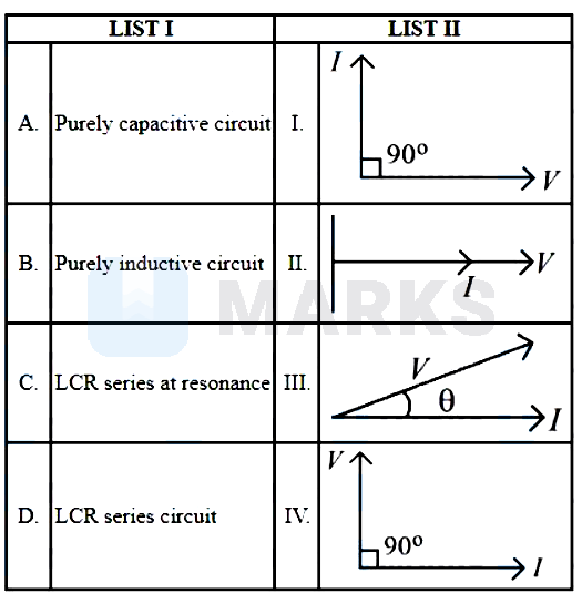 A - V lags by $90^{\circ}$ from I hence option (I) is correct.