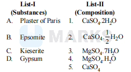 (A) Plaster or Par is $=\mathrm{CaSO}_{4} \cdot \frac{1}{2} \mathrm{H}_{2} \mathrm{O}$