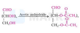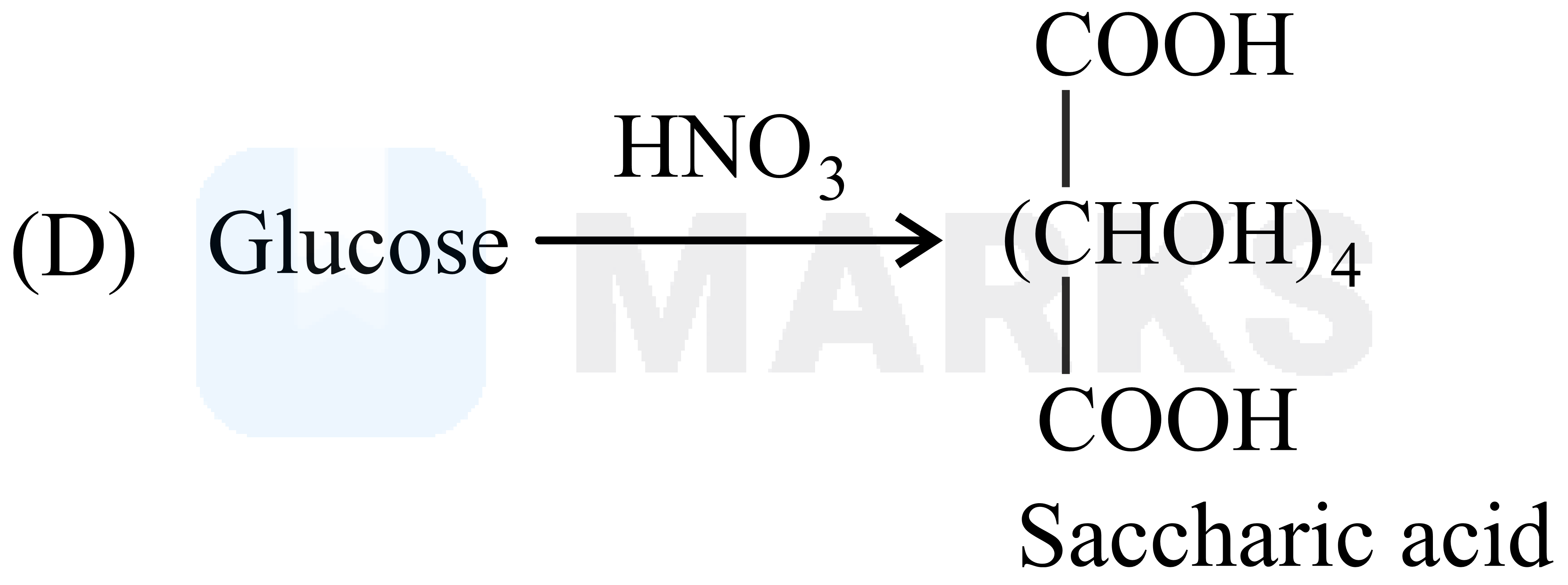 D) On oxidation with nitric acid, glucose as well as gluconic acid both yield a dicarboxylic acid, saccharic acid. This indicates the presence of a primary alcoholic (–OH) group in glucose