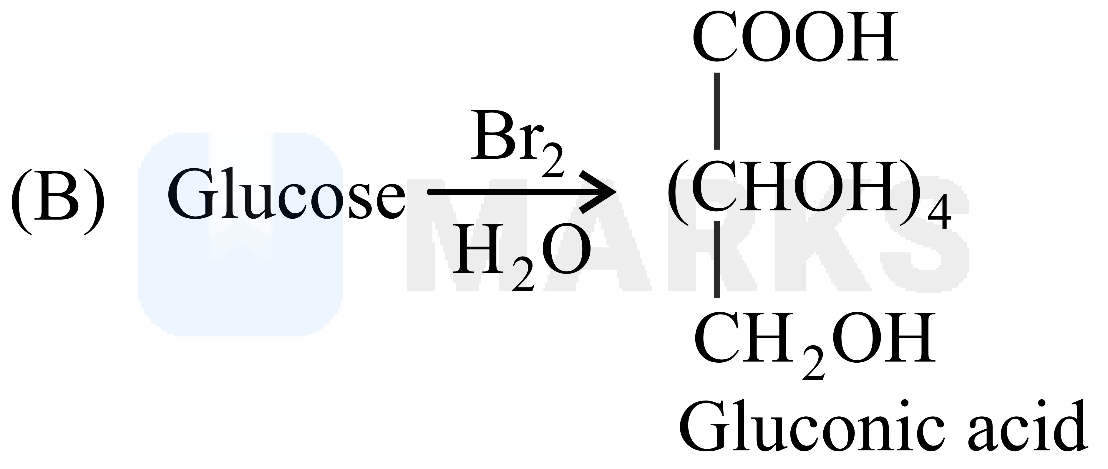 B) Glucose gets oxidised to six carbon carboxylic acid (gluconic acid) on reaction with a mild oxidising agent like bromine water. This indicates that the carbonyl group is present as an aldehydic group.