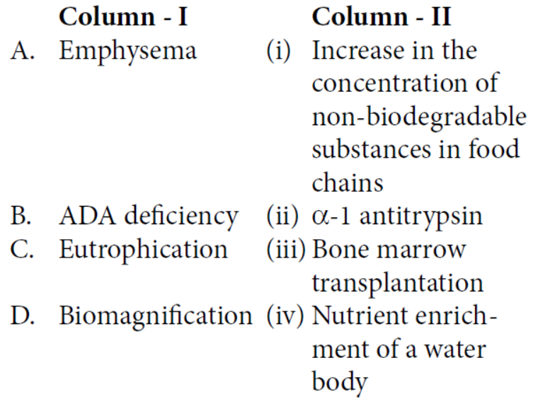 A - (ii), B - (iii), C - (iv), D - (i)