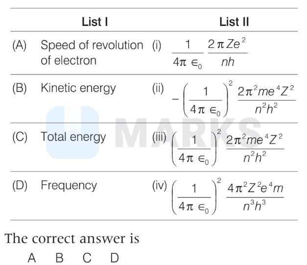 Match the following List-I with List-II in connection with Bohr's atomic model.