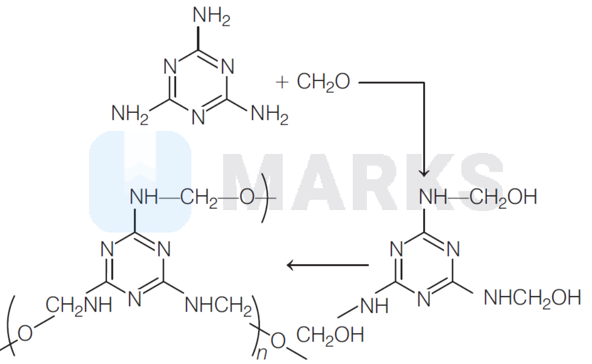 Melamine formaldehyde resin used in kitchen utensils and plates. It is also used in formation of decorative paper.