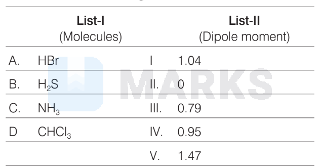 The correct match is : A-III, B-IV, C-V, D-I.