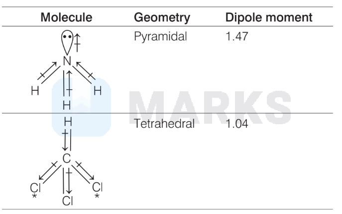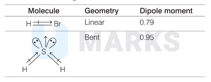 Molecules with their geometry and dipole moments are given below
