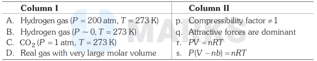 Match the gases under specified conditions listed in Column I with their properties/laws in Column II. Indicate your answer by darkening the appropriate bubbles of $4 \times 4$ matrix given in the ORS.