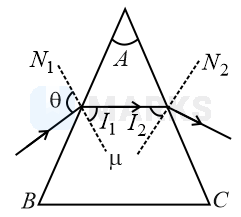 A ray of light incident on face at an angle