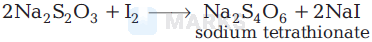 $\mathrm{Na}_2 \mathrm{~S}_2 \mathrm{O}_3+\mathrm{I}_2 \longrightarrow$ Product is