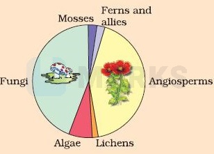 Name the unlabelled areas ‘A’ and ‘B’ of the pie chart representing the biodiversity showing their proportionate number of species of major taxa.