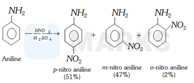 Nitration of aniline also gives nitroaniline along with nitro and nitroaniline, in strong acidic medium because