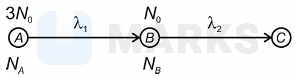 Nucleus decays into with a decay constant and further decays into with a decay constant . Initially, at , the number of nuclei of and were and respectively. If at t = t0 number of nuclei of becomes constant and equal to , then