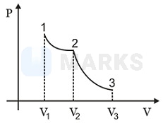 Let be the initial pressure, volume and the temperature of the gas, respectively. For isothermal expansion (1 to 2), we have
