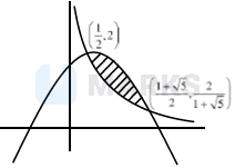$\begin{aligned} & A=\int_{\frac{1}{2}}^{\frac{1+\sqrt{5}}{2}}\left(1+3 x-2 x^2-\frac{1}{x}\right) \mathrm{dx} \\ & A=\left[x+\frac{3 x^2}{2}-\frac{2 x^3}{3}-\ln x\right]_{\frac{1}{2}}^{1+\sqrt{5}} \\ & A=\frac{1+\sqrt{5}}{2}+\frac{3}{2}\left(\frac{1+\sqrt{5}}{2}\right)^2-\frac{2}{3}\left(\frac{1+\sqrt{5}}{2}\right)^3-\ln \left(\frac{1+\sqrt{5}}{2}\right) \\ & -\frac{1}{2}-\frac{3}{2}\left(\frac{1}{4}\right)+\frac{2}{3}\left(\frac{1}{8}\right)+\ln \left(\frac{1}{2}\right) \\ & A=\frac{1}{2}+\frac{\sqrt{5}}{2}+\frac{3}{8}+\frac{3}{4} \sqrt{5}+\frac{15}{8}-\frac{4}{3}-\frac{2}{3} \sqrt{5} \\ & -\frac{1}{2}-\frac{3}{8}+\frac{1}{12}-\ln (1+\sqrt{5}) \\ & =\sqrt{5}\left(\frac{1}{2}+\frac{3}{4}-\frac{2}{3}\right)+\frac{15}{8}-\frac{4}{3}+\frac{1}{12}-\ln (1+\sqrt{5}) \\ & =\frac{14}{24} \sqrt{5}+\frac{15}{24}-\ln (1+\sqrt{5})\end{aligned}$