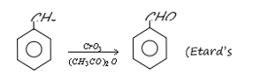 Oxidation of toluene with $\mathrm{CrO}_3$ in the presence of $\left(\mathrm{CH}_3 \mathrm{CO}\right) \mathrm{O}_2$ gives a product ' $A$ ' which on treatment with aqueous $\mathrm{NaOH}$ produces