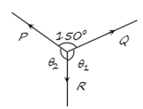 $\frac{P}{\sin \theta_1}=\frac{Q}{\sin \theta_2}=\frac{R}{\sin 150^{\circ}}$