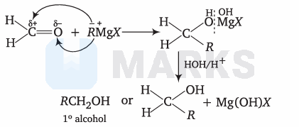 Primary alcohols can be obtained from the reaction of $R \operatorname{Mg} X$ with
