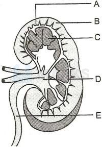 Refer the following diagram and identify the labelled parts of kidney as indicated.