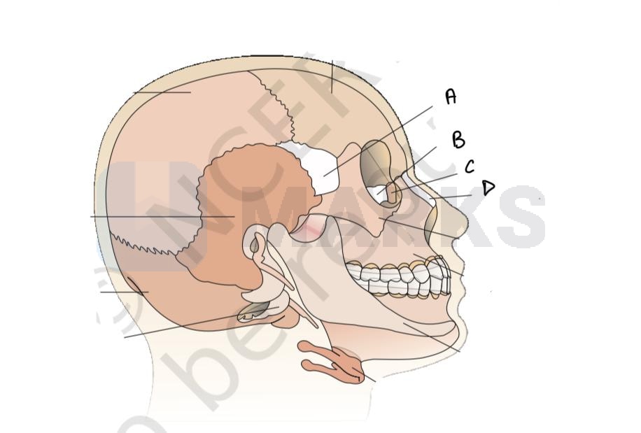 Sphenoid bone, Ethmoid Bone, Lacrimal Bone, Nasal Bone are A, B, C, D