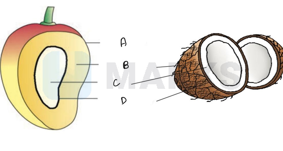 A, B, C and D are Epicarp, Mesocarp, Seed, Endocarp