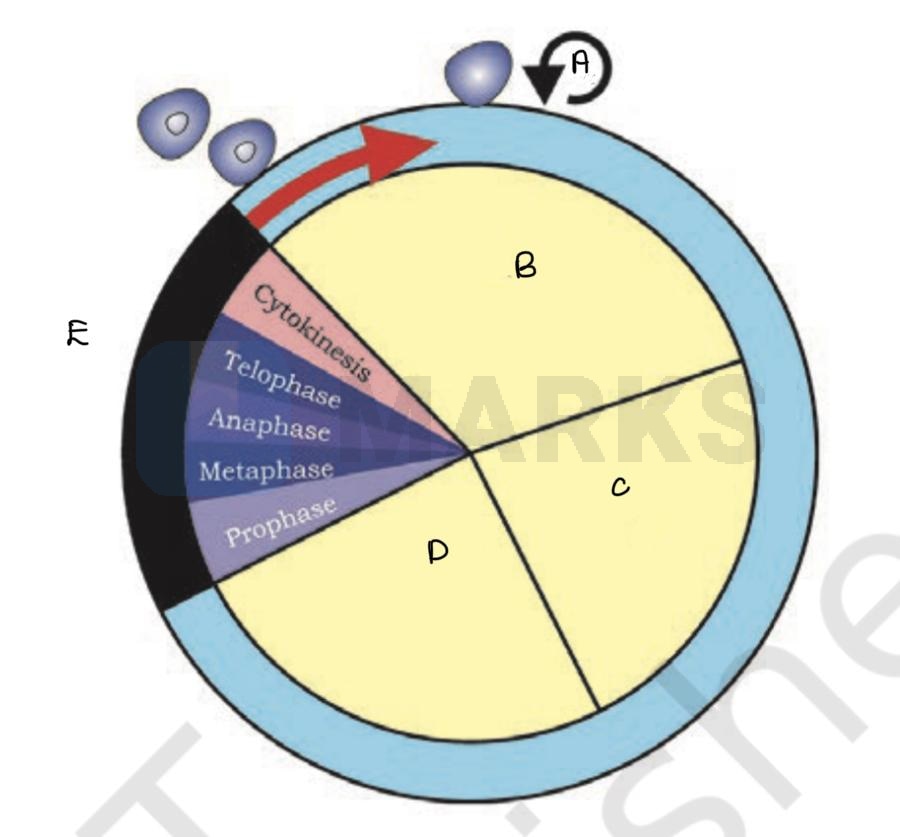 G0, G1, S, G2 and M Phase are A, B, C, D and E respectively.