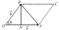 Let $\overrightarrow{O A}=\vec{a}$ and $\overrightarrow{O B}=\vec{b}$ and $\angle A O B=\theta$. Complete the parallelogram $O A C B$. Join $B A$. Draw $B N \perp O A$.
