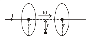 Consider $I_d$ be the displacement current in the region between two plates of parallel plate capacitor, shown in figure.