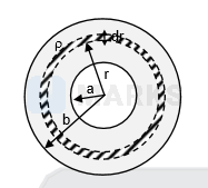 Space between two concentric conducting spheres of radii and is filled with a medium of resistivity . The resistance between the two spheres will be: