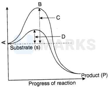 Study the following graph of the concept of activation energy given below. Select the correct option for stages labeled A to D.