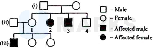 Since parents are showing the recessive trait, they are heterozygous having the genotype - for both parents. First child (female) is not affected but one of her son is suggesting that she is carrier with the genotye same as her parents. Also, her husband is not affected suggesting that he is a carrier as well. The third child of the parent is an affected son having the diseases sickle cell anemia. His genotype will be .
