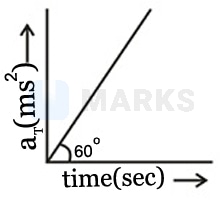Tangential acceleration of a particle moving in a circle of radius varies with time as shown in figure (initial velocity of the particle is zero). Time after which total acceleration of particle makes an angle of with radial acceleration is
