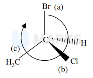 Lowest priority atom is always away from the viewer. Priority is seen on the basis of atomic number and if atomic number are same then on the basis of atomic mass. See in the order higher to lower priority.