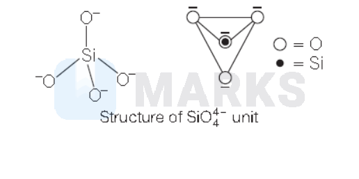 The basic building unit of all silicates is the tetrahedral $\mathrm{SiO}_4^{4-}$. It is represented as