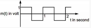 The carrier wave is given by $(C) t=2 \sin (8 \pi t)$ volt . The modulating signal is a square wave as shown. Find modulation index.