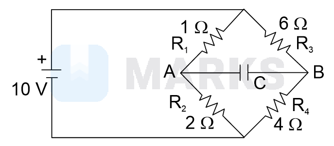 The charge accumulated on the capacitor connected in the following circuit is ______.