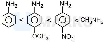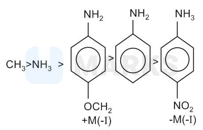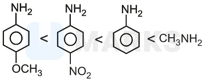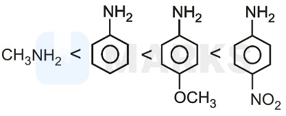(Aliphatic amines) Most basic due to +I effect of methyl group. Methoxy group provides electron density (+M)-