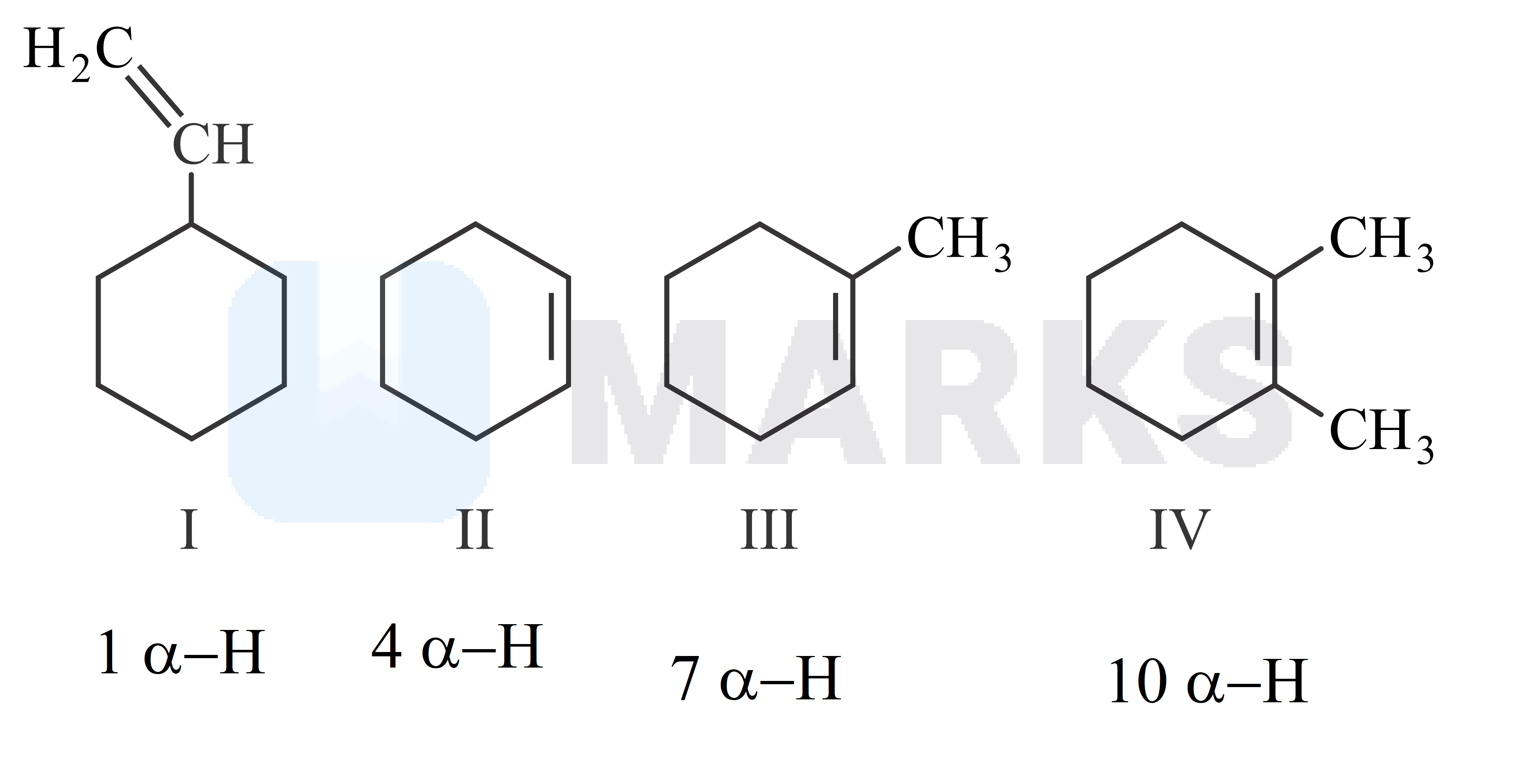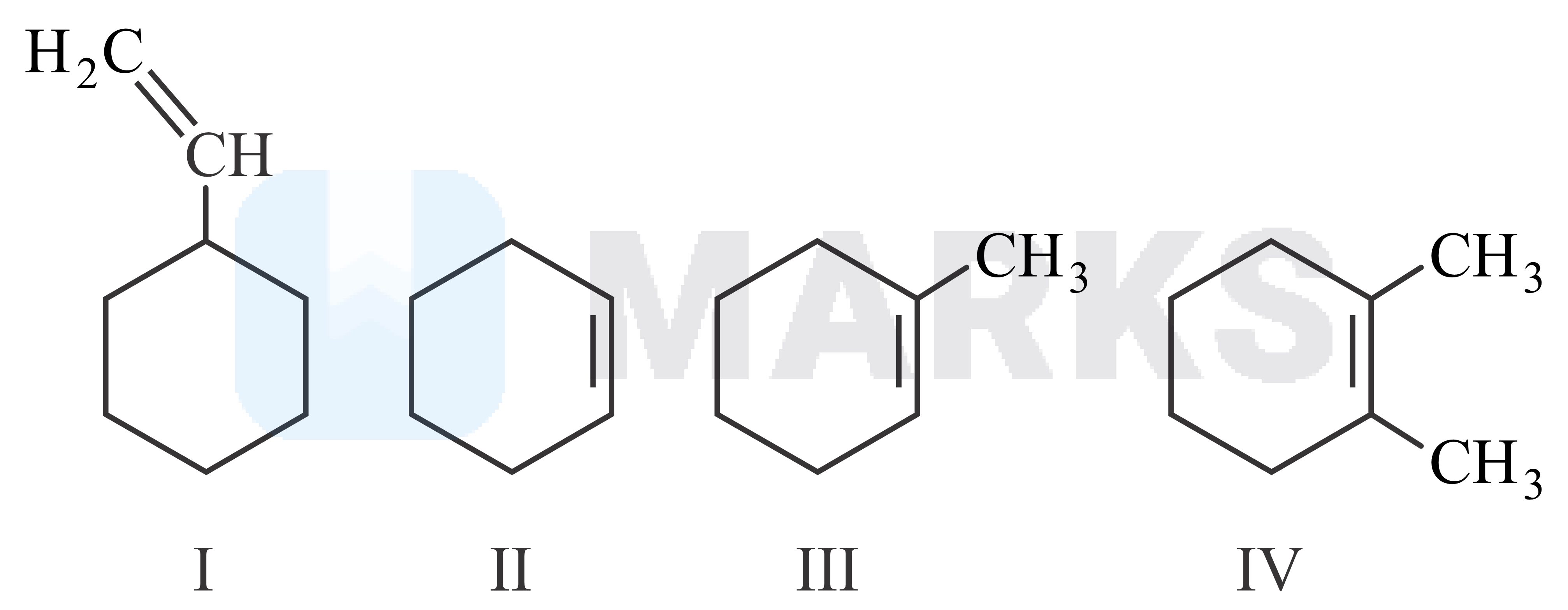 The correct order of the stability of the following compounds based on hyperconjugation is