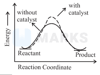 In the above graph, the curve in the presence of catalyst is having less activation energy. The enthalpy change is constant after addition of the positive catalyst