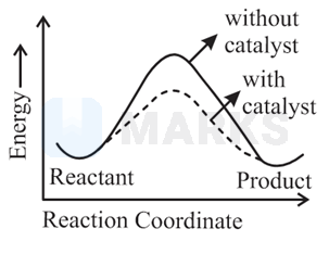 In the above graph, the curve in the presence of catalyst is having less activation energy. The enthalpy change is constant after addition of the positive catalyst