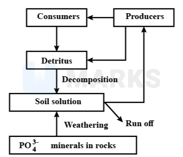 The flow chart represents the phosphorus biogeochemical cycle occurring in a terrestrial ecosystem. The phosphorus cycle is a sedimentary cycle and its reservoir pool is lithosphere.