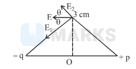 The electric field intensity $\overrightarrow{\mathrm{E}}$, due to an electric dipole of moment $\vec{p}$, at a point on the equatorial line is