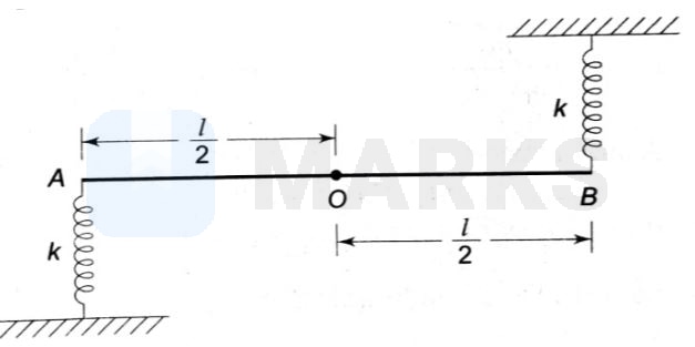 The ends of a rod of length and mass are attached to two identical springs as shown in the figure. The rod is free to rotate about its centre . The rod is depressed slightly at end and released. The time period of the oscillation is