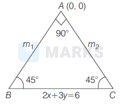 & \text { Slope of } A B=m_1 \tan 45^{\circ}=\left|\frac{m_1+\frac{2}{3}}{1-\frac{2}{3} m_1}\right| \\